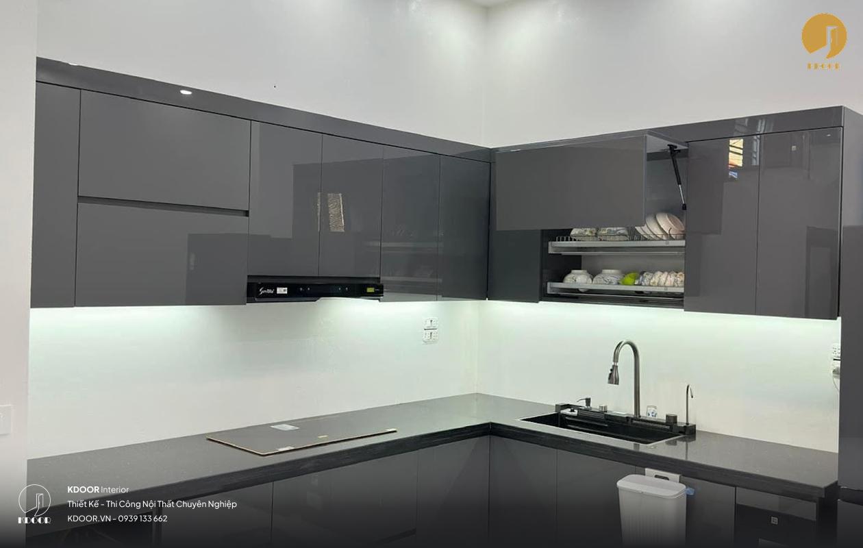 Tủ bếp gỗ nhựa đặc phủ Acrylic tráng gương